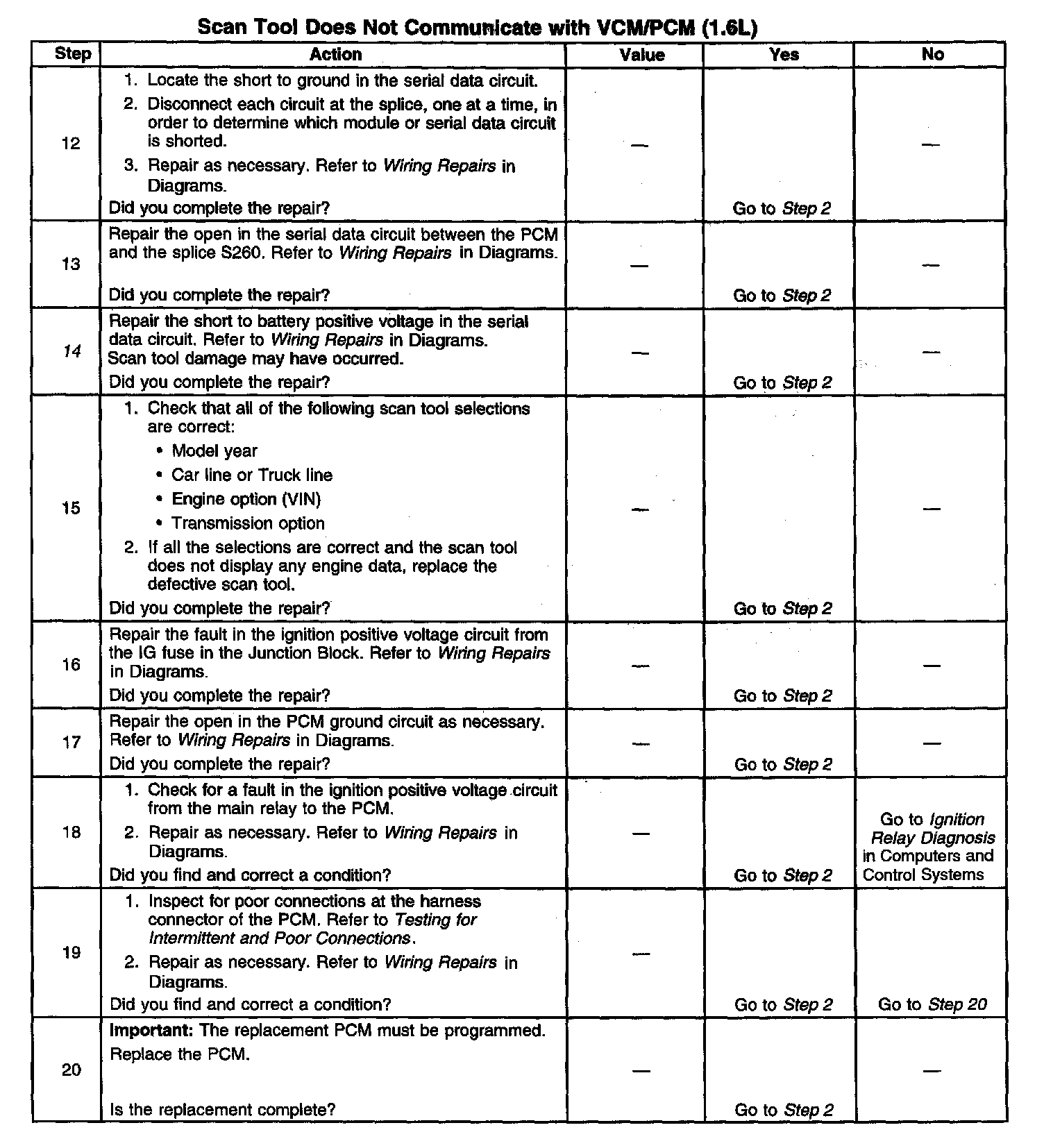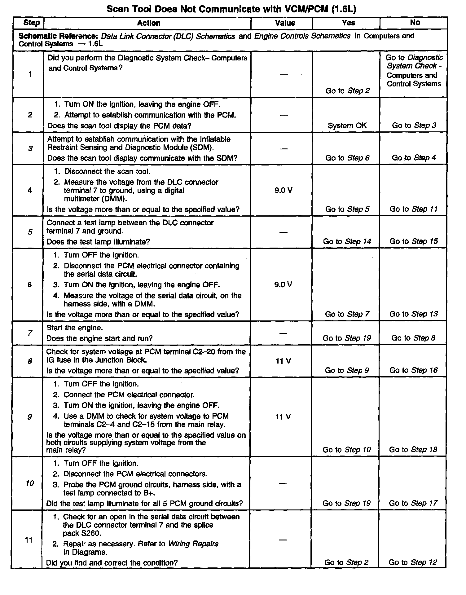 9. This step checks whether the PCM is receiving ignition positive voltage from the main relay when the ignition is ON. The PCM can not provide serial data without ignition positive voltage from the main relay.