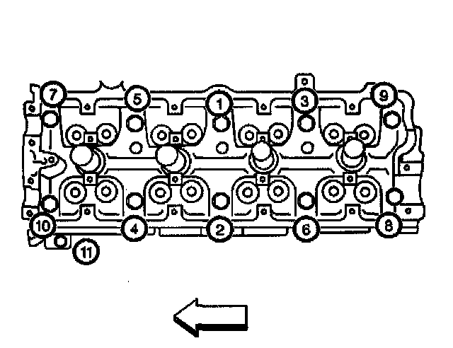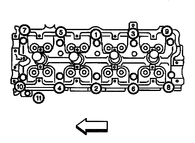 3. Loosen the cylinder head bolts in the sequence shown to 0 torque.