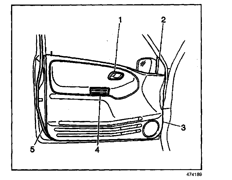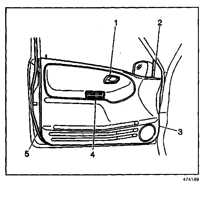 5. Position the door trim panel (3) away from the door in order to gain access to the right front side window switch electrical connector.
