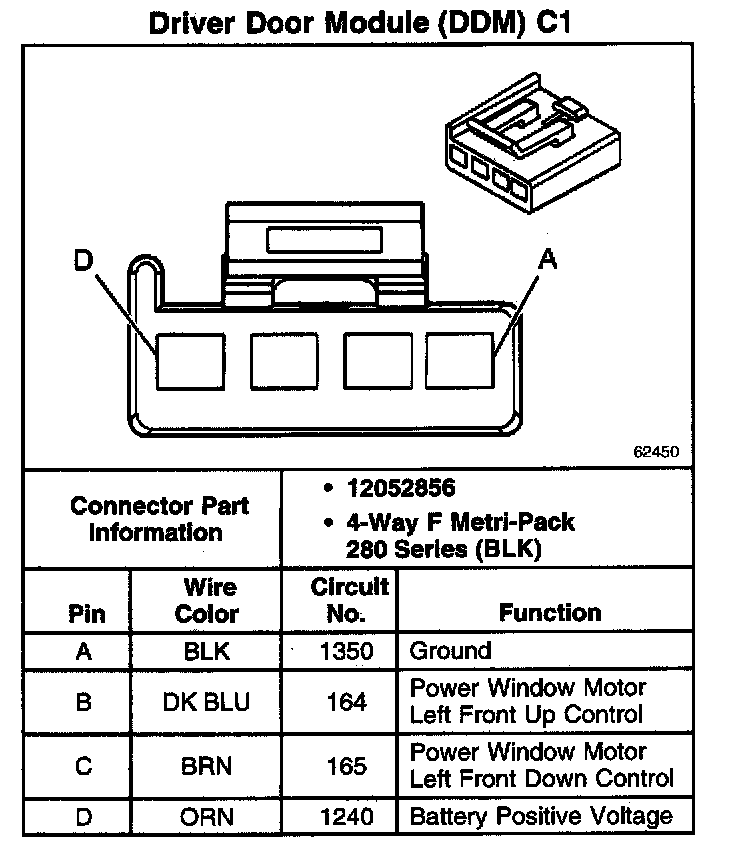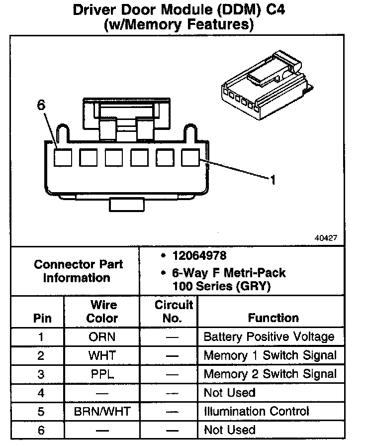 Driver Door Module (DDM) C4 (W/Memory Features):