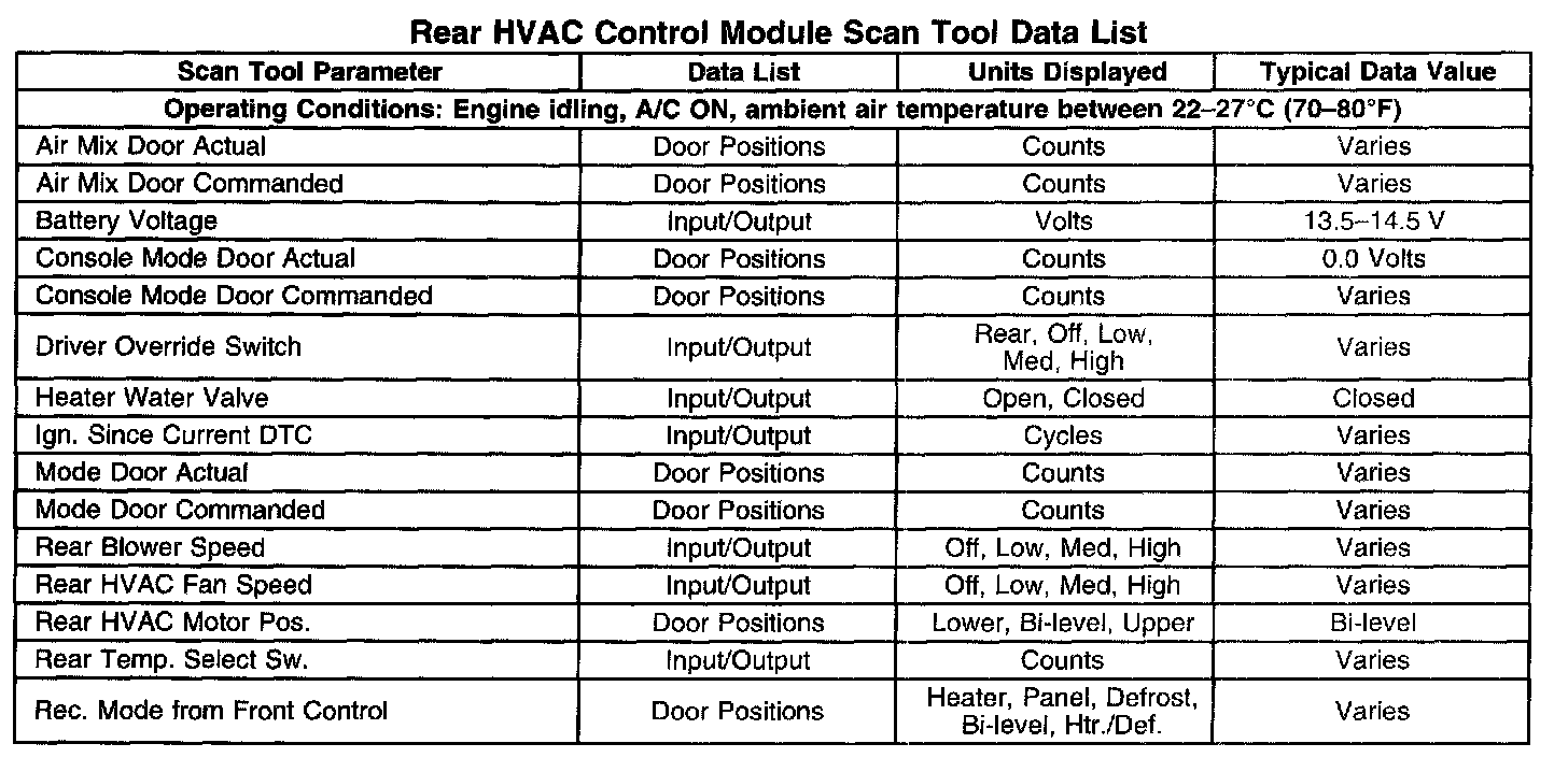 Rear HVAC Control Module Scan Tool Data List: