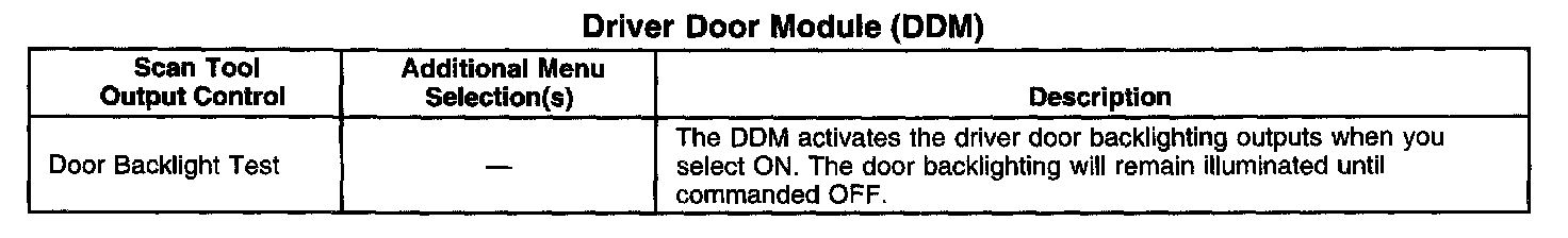 Scan Tool Output Controls - Driver Door Module (DDM)