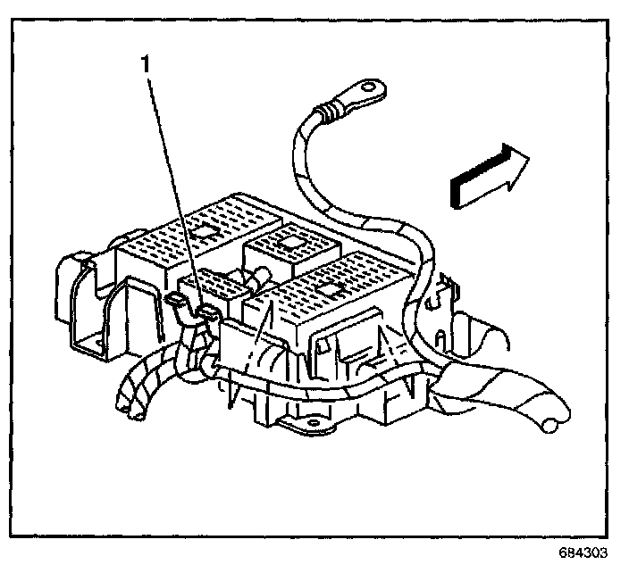 12. Disconnect the body wiring harness connector (1) from the junction block.
