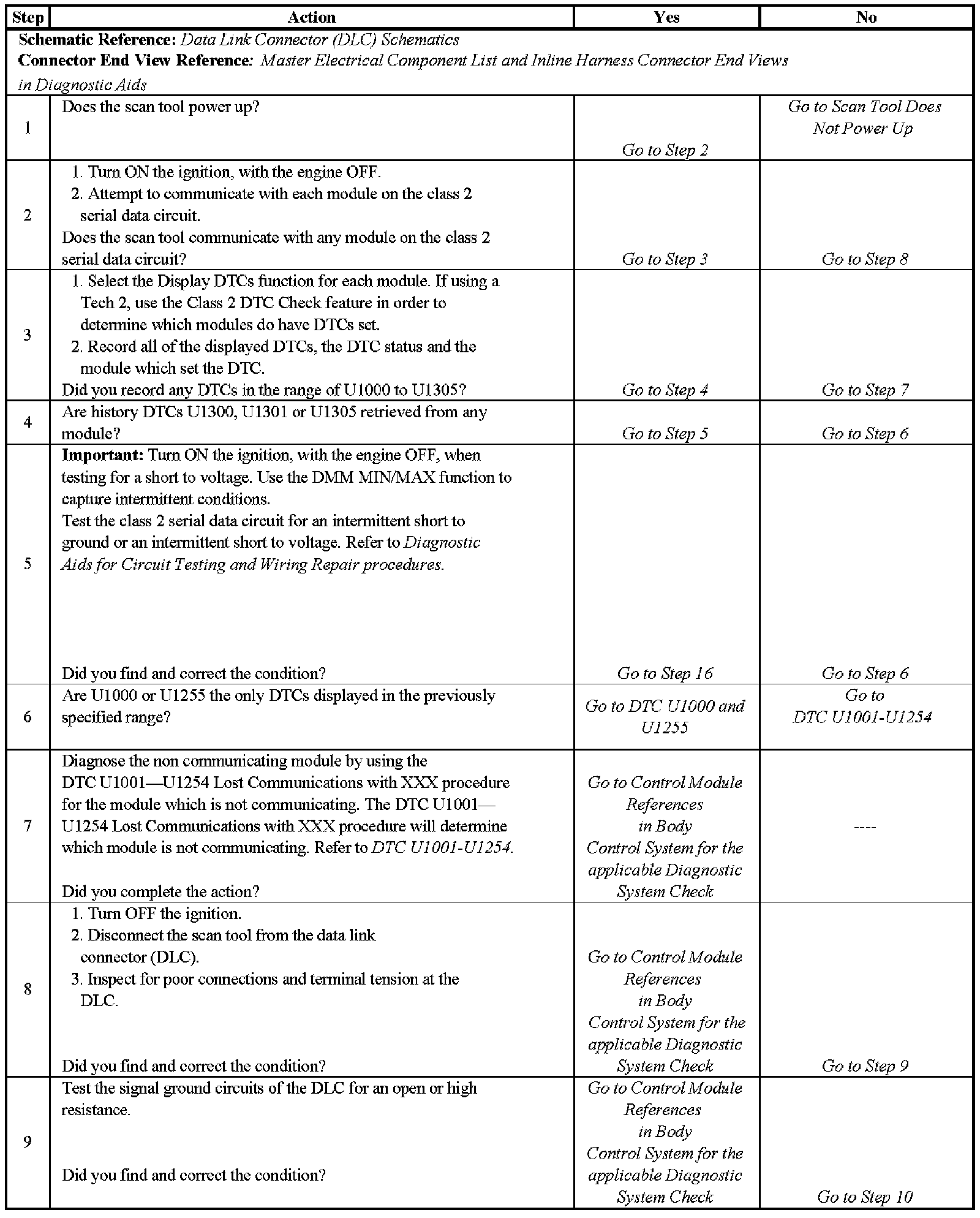 10. Normal class 2 serial data communication cannot take place until the body control module (BCM) sends the appropriate power mode message. If the BCM does not send a wake-up message, other modules on the class 2 serial data circuit may not communicate.