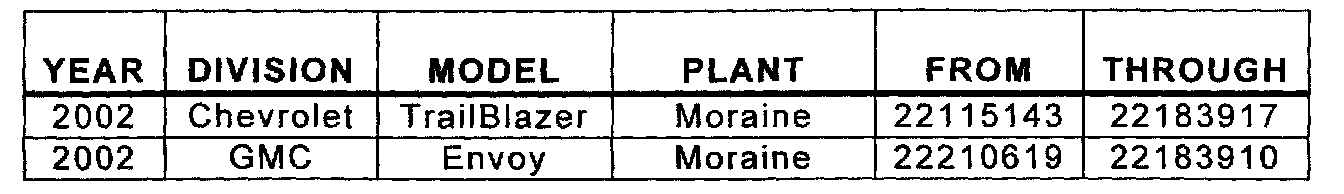 CERTAIN 2002 4WD CHEVROLET TRAILBLAZER AND GMC ENVOY