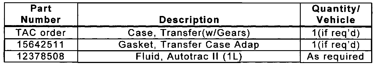 It is estimated that less than 1% of involved vehicles will require a transfer case replacement. Most dealers will not replace a single transfer case as part of this recall. Dealers should call the Technical Assistance Center to obtain the transfer case replacement.