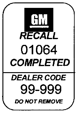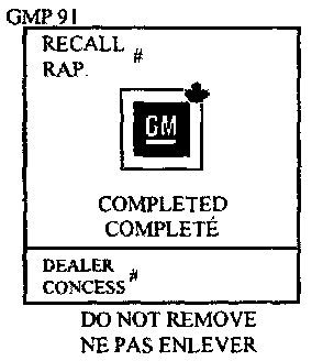 Put the Recall Identification Label on a clean and dry surface of the radiator core support in an area that will be visible to people servicing the vehicle. Additional Recall Identification Labels for Canadian dealers can be obtained from DGN by calling 1-800-668-5539 (Monday-Friday, 8:00 a.m. to 5:00 p.m. EST). Ask for Item Number GMP 91 when ordering.