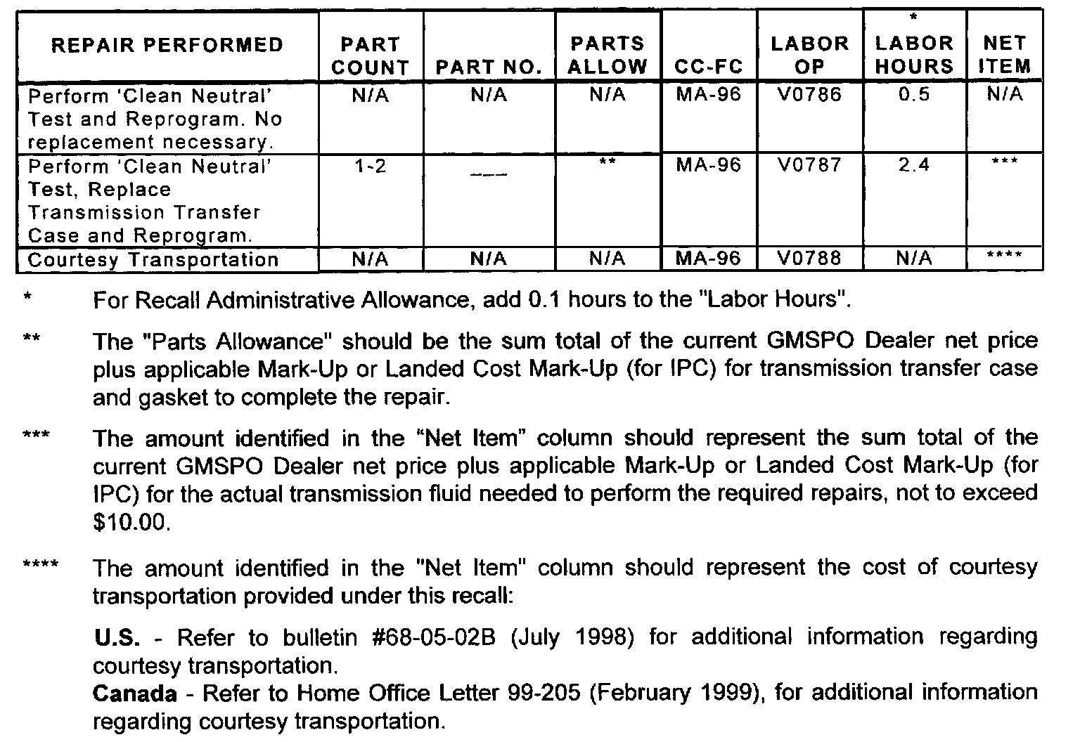 Involved are certain 2002 4WD Chevrolet TrailBlazer and GMC Envoy model vehicles equipped with a transmission transfer case and built within the VIN breakpoints shown.