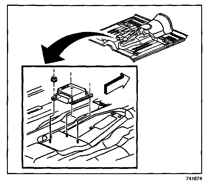 3. Partially remove the console mounting bracket in order to allow access to the rear carpet. Refer to Bracket Replacement - Console Floor in Instrument Panel, Gages, and Console.