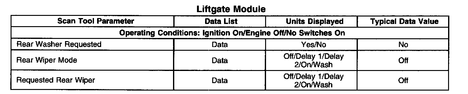 Scan Tool Data List - Liftgate Module
