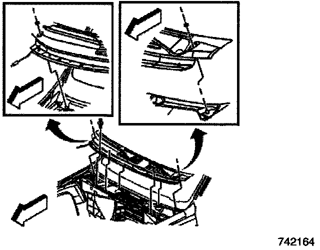 12. Remove the air inlet grille and reposition it up to the windshield. It is not necessary to disconnect the washer hose.