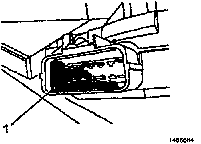 16. Inspect the inside of the electrical connector on the wiper motor for moisture or water. If no moisture or water is found, continue inspecting for evidence or signs that moisture or water was present at some earlier time. Indicators include water stains, dried dirt, etc. (1).