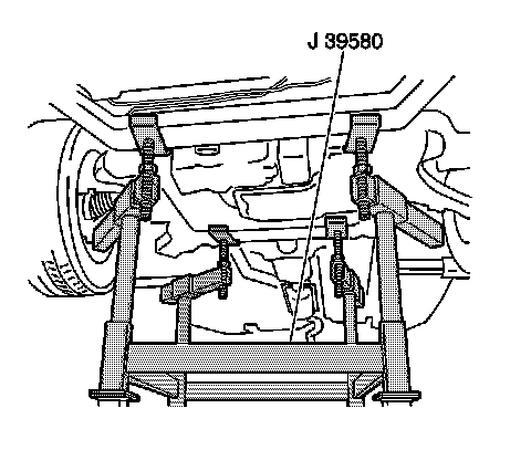 21. Lower the vehicle until the frame contacts the J 39580 .