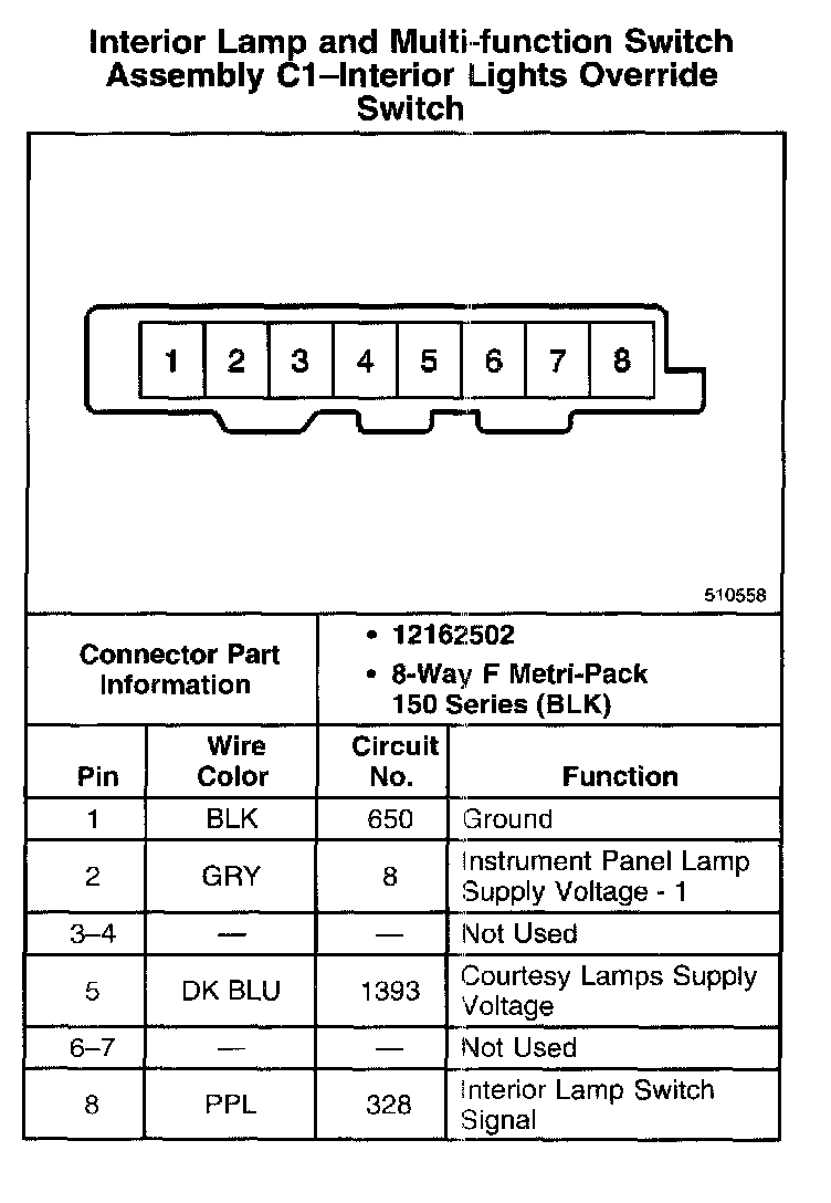 Interior Lamp And Multi-function Switch Assembly C1-Interior Lights Override Switch: