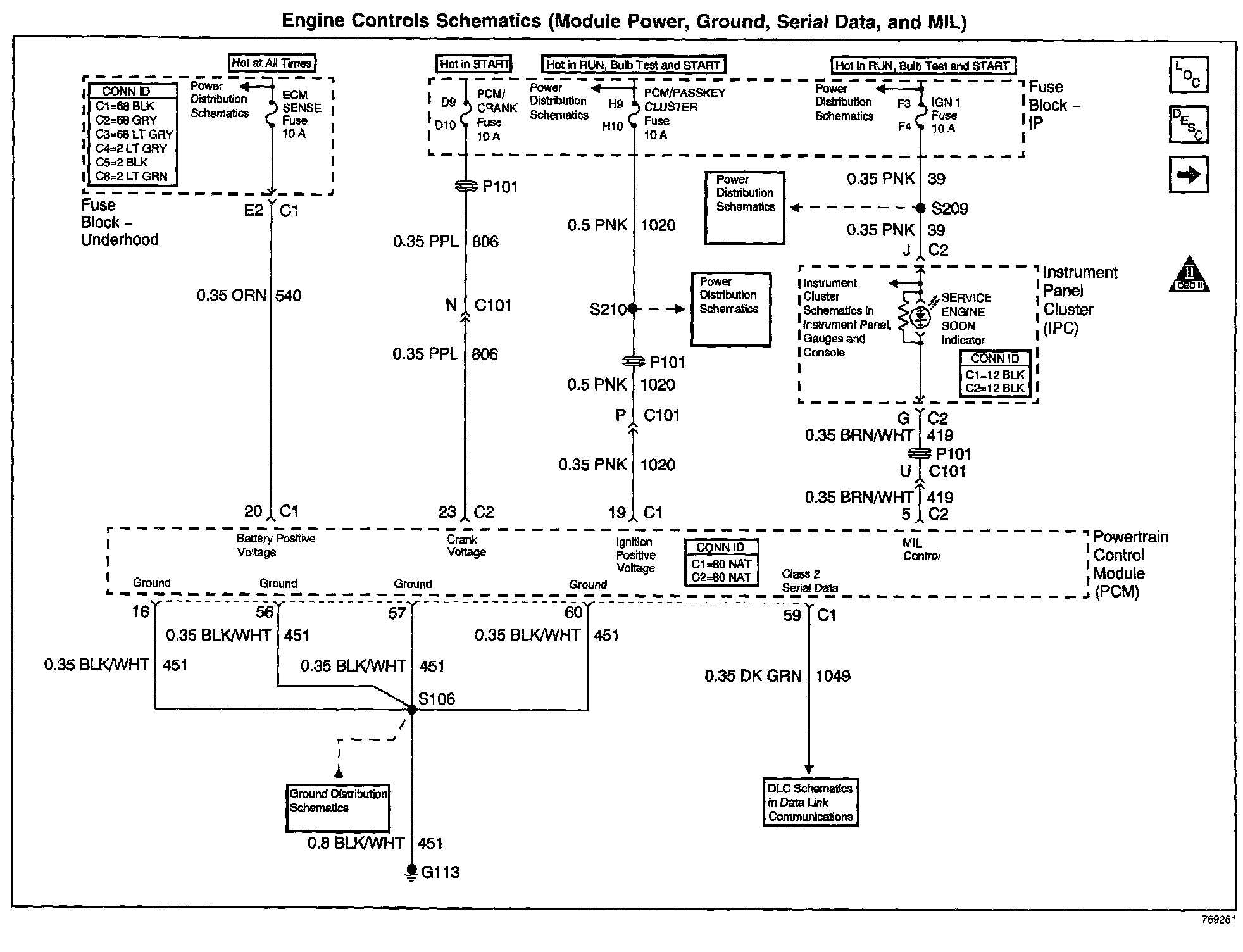 Engine Controls Schematics: Module Power, Ground, Serial Data And MIL: