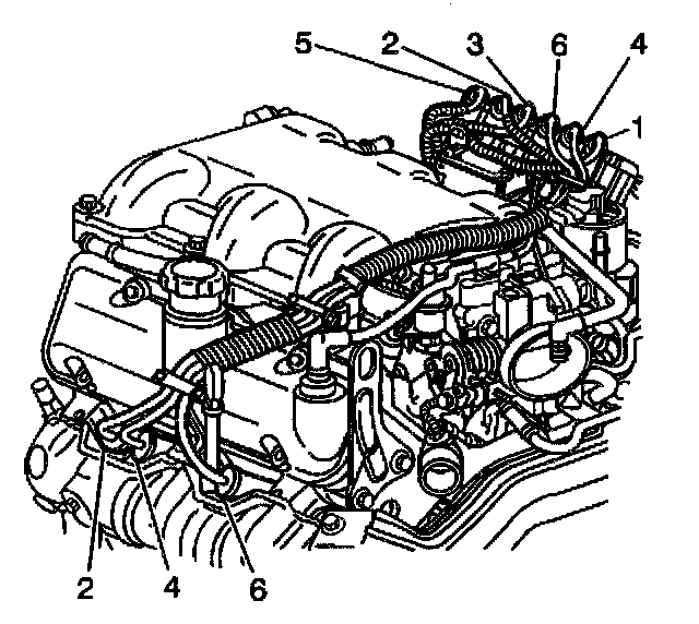 2. Remove the spark plug wires (2, 4, 6) from the front bank spark plugs.