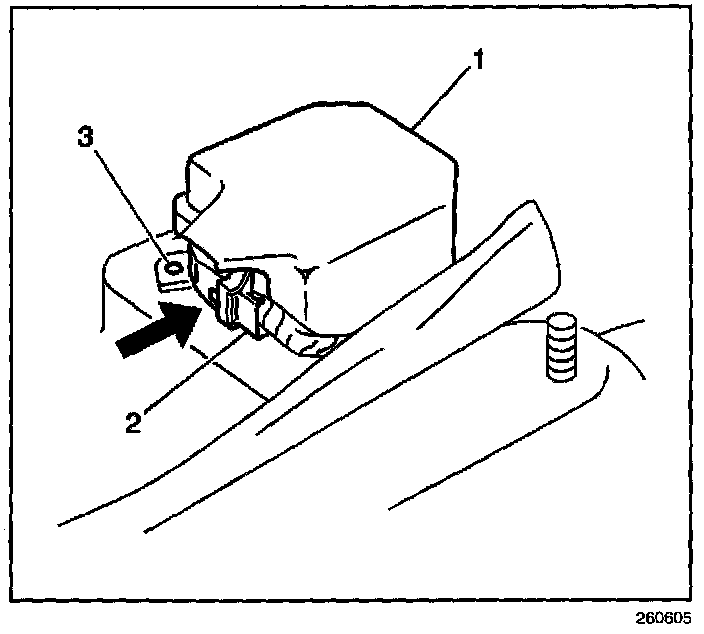 5. Disconnect the SDM wiring harness connector (3) from the SDM (1).