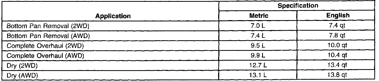 Fluid Capacity Specifications