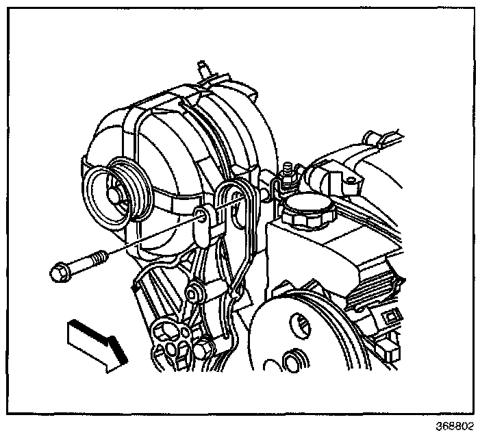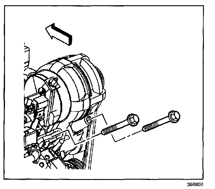2. Rotate and secure the engine forward to access rear generator bolts. Refer to Rotating the Engine for Service Access in Engine-3.4L.