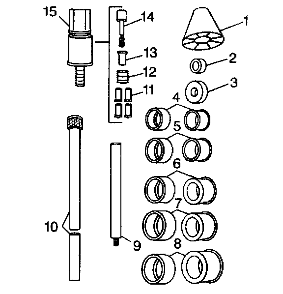 3. Select the expanding driver (4-8) and washer (2 or 3) from the J 33049.