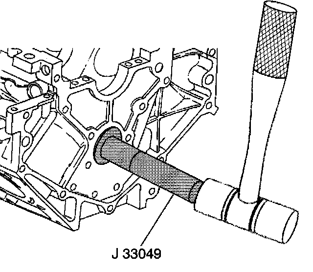 Important: To remove the front camshaft bearing, operate the tool from the rear of the block using the guide cone in the rear camshaft bearing bore.