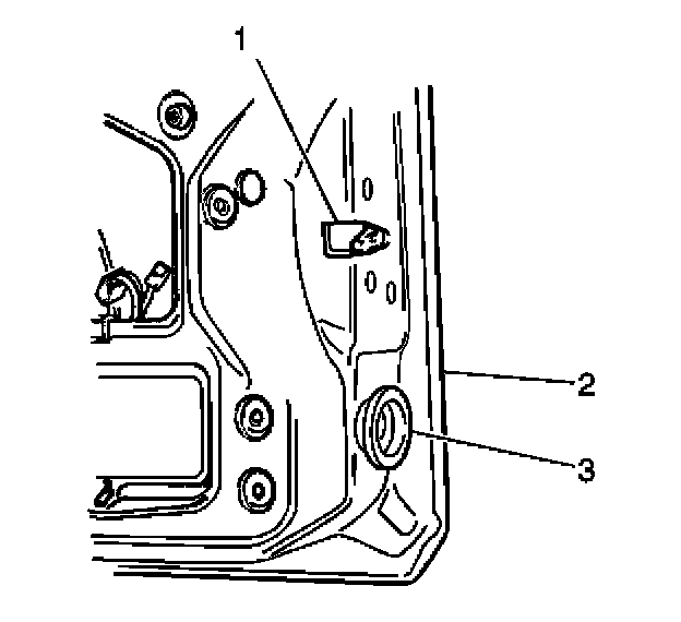 1. Install the endgate bumper (3) to the endgate panel (2). Secure the bumper with the 1 mounting bolt.