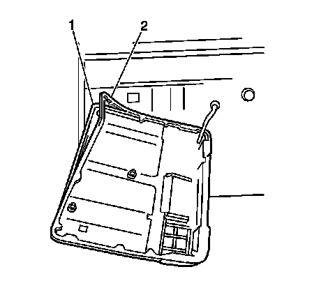 2. Install the license plate lamp bulb socket (1) to the lamp assembly (2), if removed.