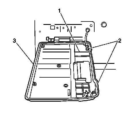 4. Install the rear license plate lamp assembly (1) to the rear license plate housing (3). Secure the assembly with the 2 screws (2).