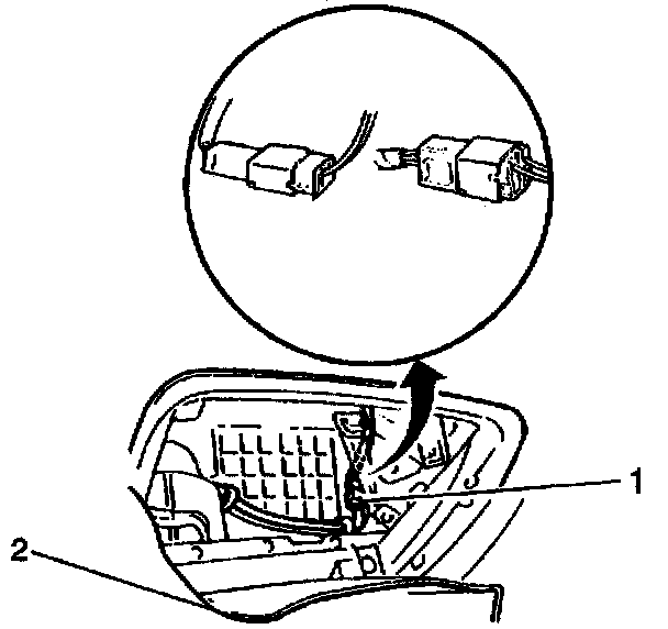 5. Remove the CPA and the yellow 2-way connector from the inflatable restraint I/P module pigtail (1).