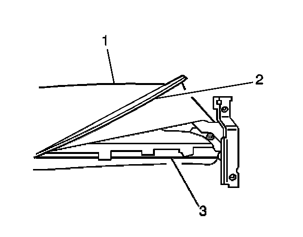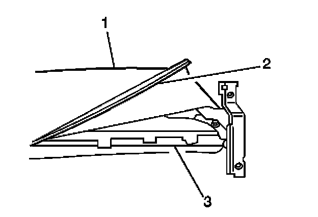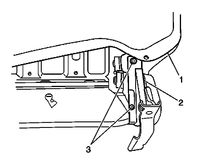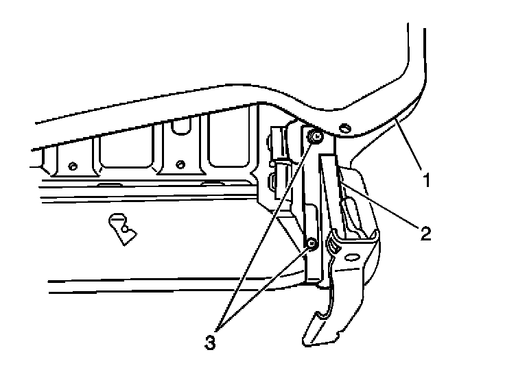 3. Install the rear seat recliner inside lower finish cover (2) to each side of the seat back cushion (1). Secure the cover with the 2 screws (3).