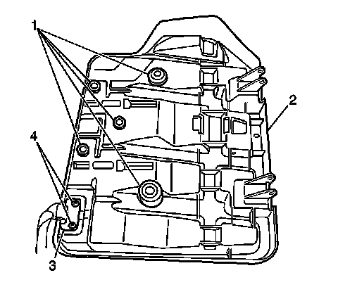 1. Install the rear seat pull strap (3) to the rear seat cushion frame (2). Secure the strap with the 2 screws (4).