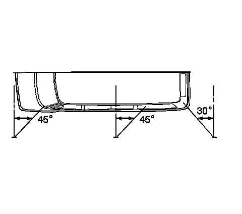 5. In order to check the windshield, aim the water spray 30 degrees down and 45 degrees toward the rear.
