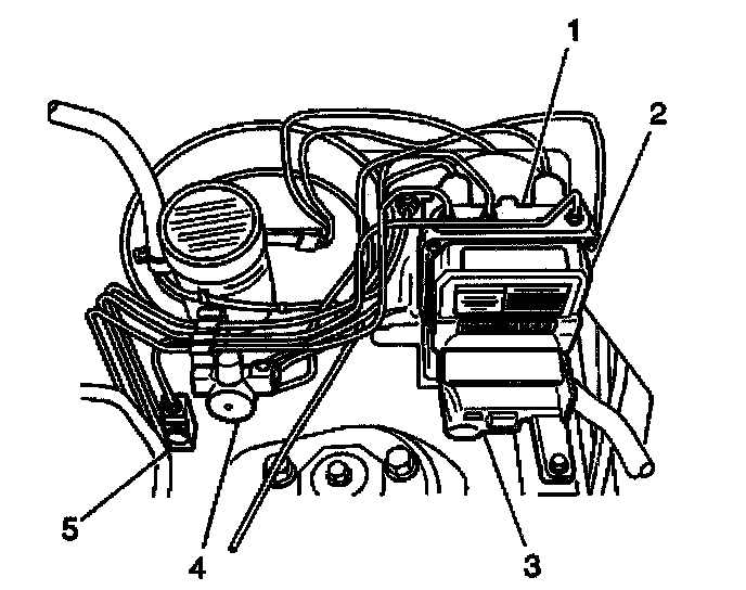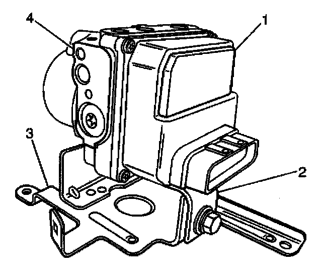 8. Remove the BPMV (4) and the EBCM (1) as an assembly from the vehicle.
