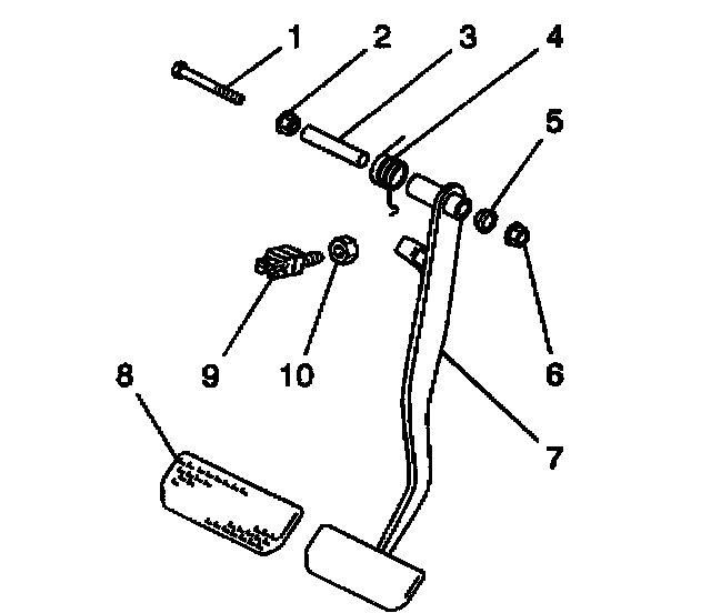4. Remove the nut (6) from the brake pedal pivot pin bolt (1).