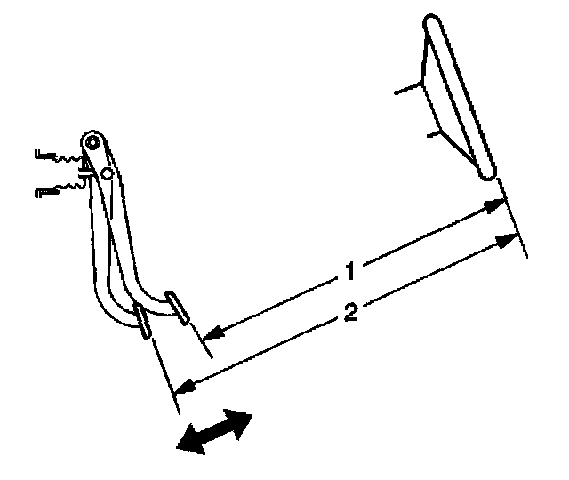 8. Subtract the initial measurement, unapplied (1), from the averaged, applied measurement (2) to obtain the brake pedal travel distance.