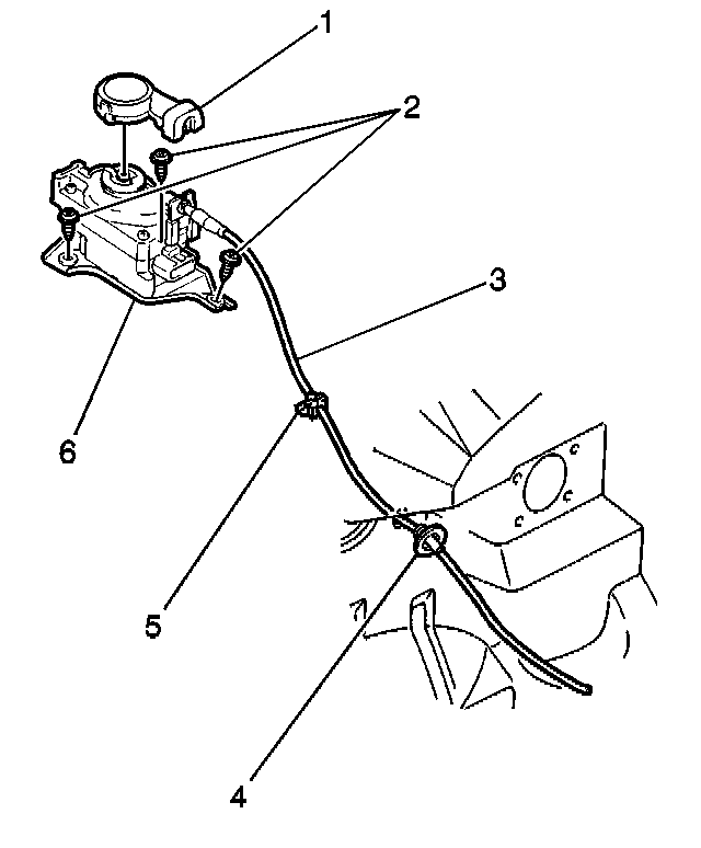 1. Install the cruise control servo cable to the vehicle. Secure the cable with the retainer (2) and the grommet (4).