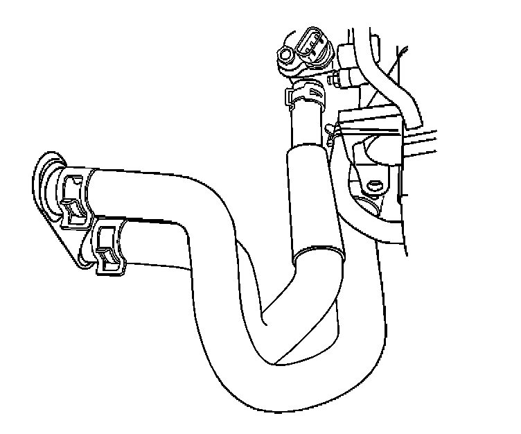 1. Install the heater core inlet hose at the bulkhead and at the rear of the cylinder head.