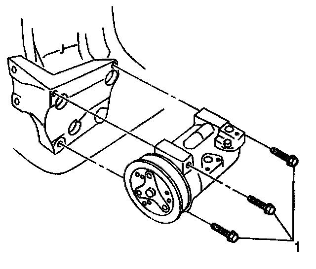 2. Remove the three bolts (1) and position the A/C compressor aside.