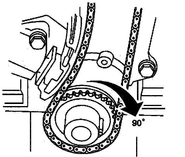 4. Rotate the crankshaft 90 degrees to prevent interference between the valves and the pistons.