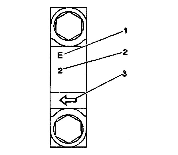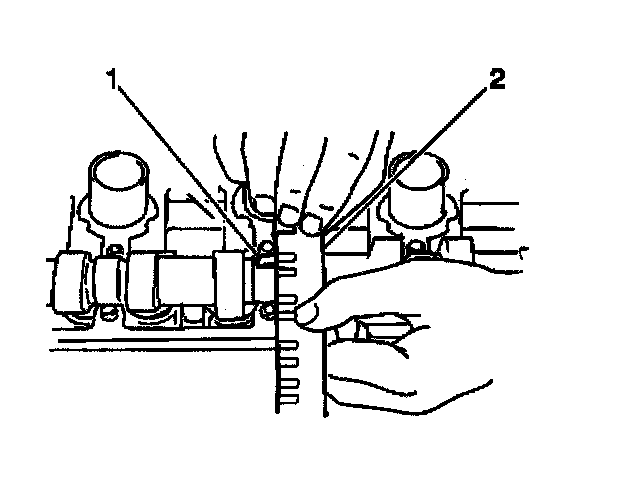 7. Apply a bead of GM P/N 12346240 (Canadian P/N 1095S493) or equivalent to the exhaust camshaft end housing (2).