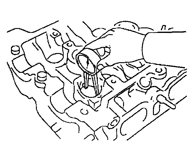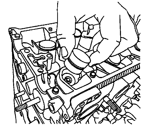 1. Pour engine oil into the oil feed hole in the valve lifter bore in order to flush any debris from the gallery and to prelube the bore.