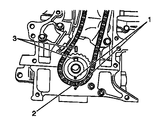 3. Line up the crankshaft keyway with the timing mark on the engine block (3).