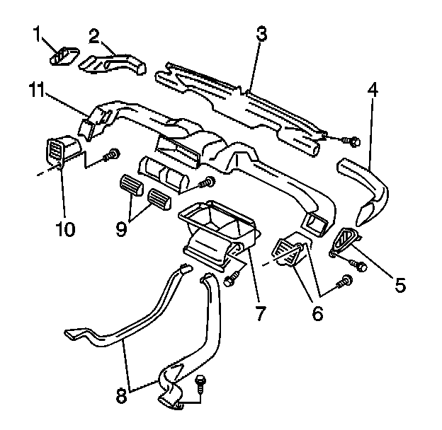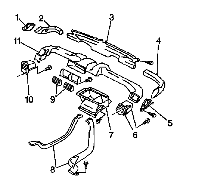 5. Remove the IP air outlet duct (11) from the vehicle.