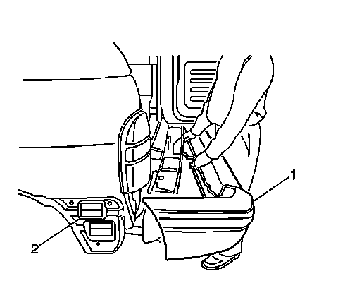 1. Remove the rear bumper fascia (1). Refer to Rear Bumper Fascia Replacement (Service and Repair) in Bumpers.