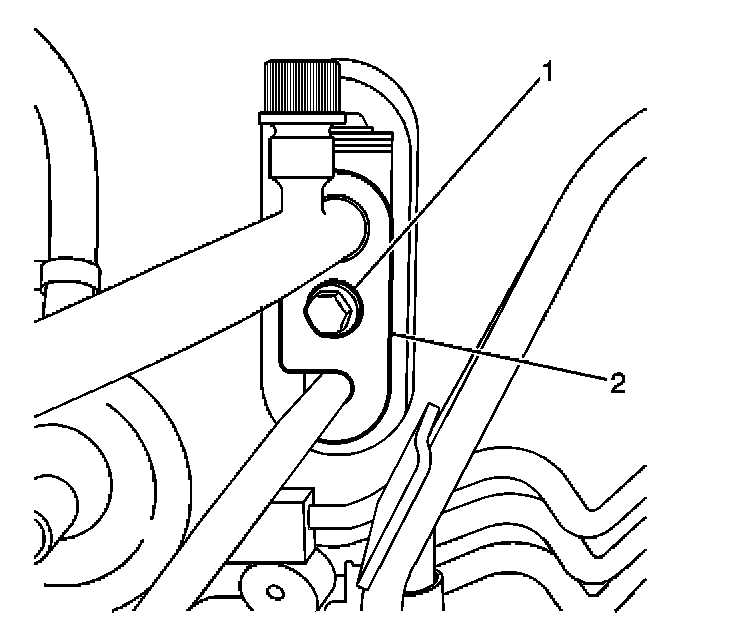 7. Install the evaporator outlet tube hold-down retainers. Secure with the 2 bolts.