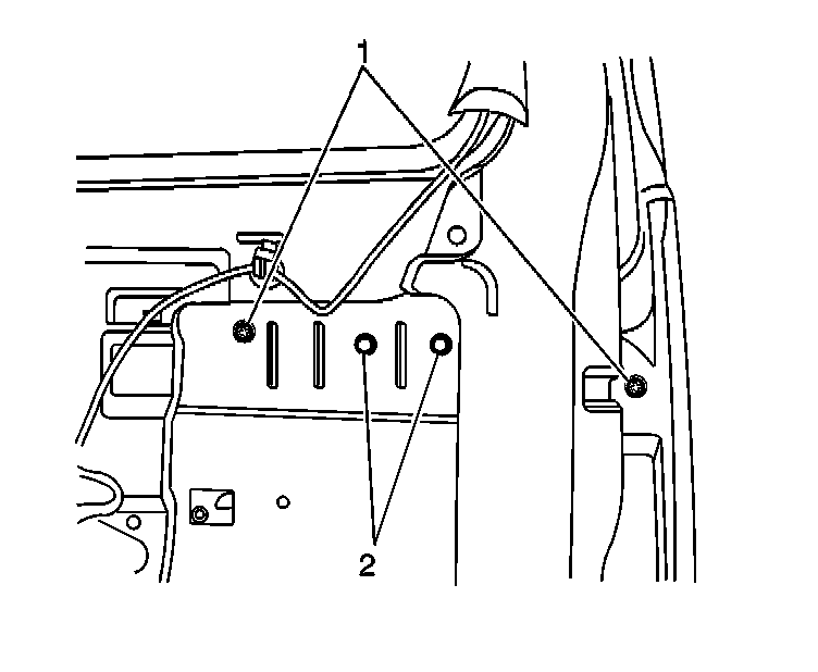2. Remove the 2 bolts (1) that retain the rear license plate housing.