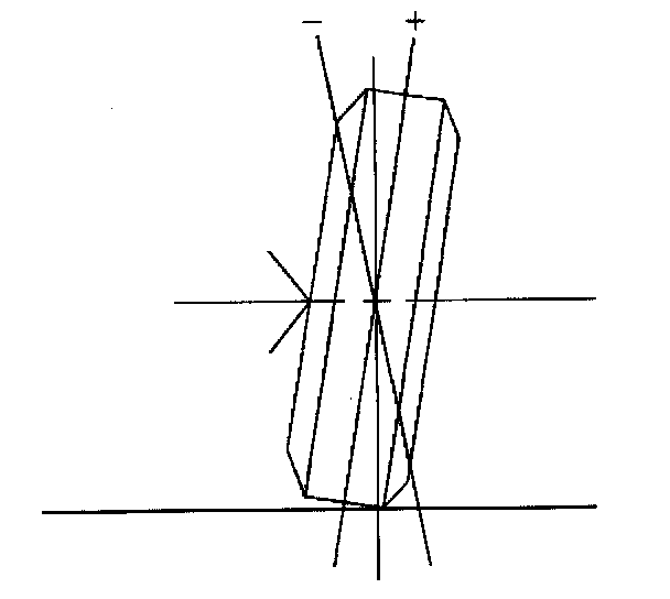 Camber DescriptionCamber is the tilting of the wheels from the vertical when viewed from the front of the vehicle. When the wheels tilt outward at the top, the camber is positive (+). When the wheel tilts inward at the top, the camber is negative (-). The amount of tilt is measured in degrees from the vertical. Camber settings influence the directional control and the tire wear.