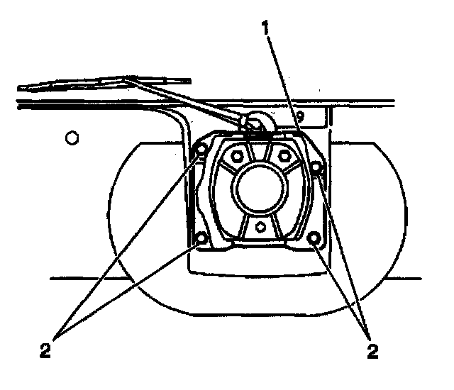 1. Install the spare wheel carrier (1) to the vehicle. Install the 4 bolts (2) that retain the carrier to the vehicle.