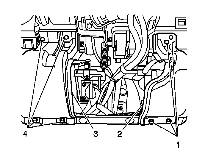 1. Install the IP drivers knee bolster panel (2 or 3). Secure the panel with the 4 bolts (1 or 4).