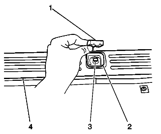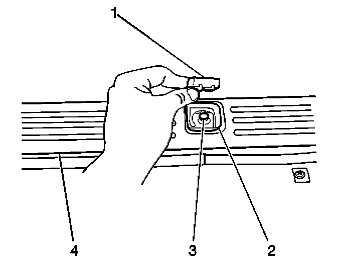 1. Install the rear sill child seat anchor bracket (2) to the vehicle. Secure the rear sill bracket with the bolt (3).